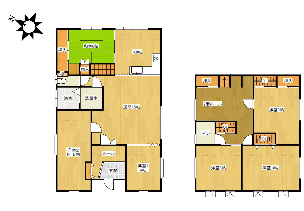 | 間取り | 6LDK(1階:LDK23・和6・洋9.5・洋6 / 2階:洋10・洋9・洋8) |